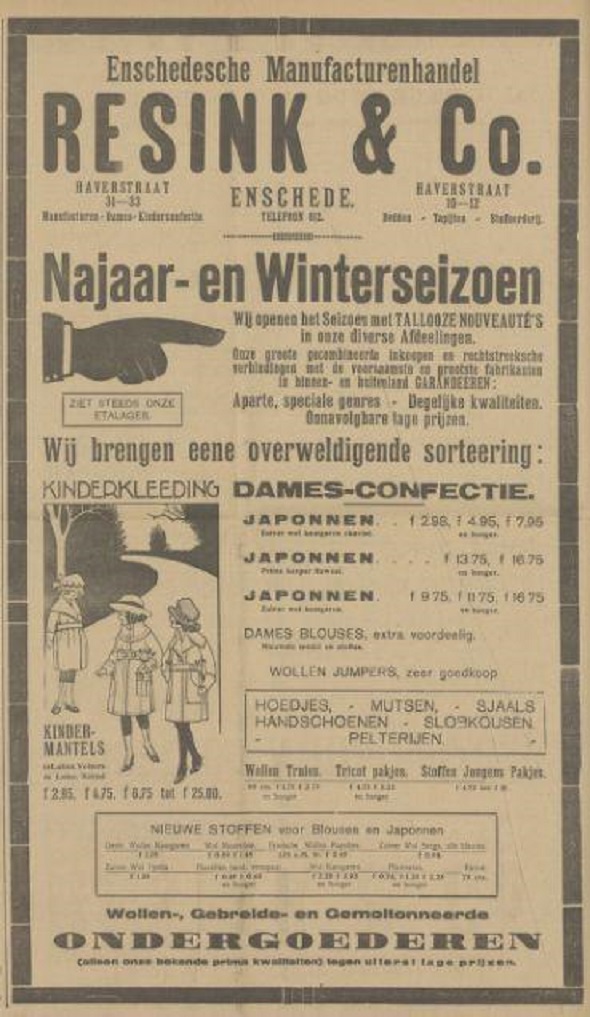 Ribbels, J., Oldenzaalschestraat 146. Telefoon 6.