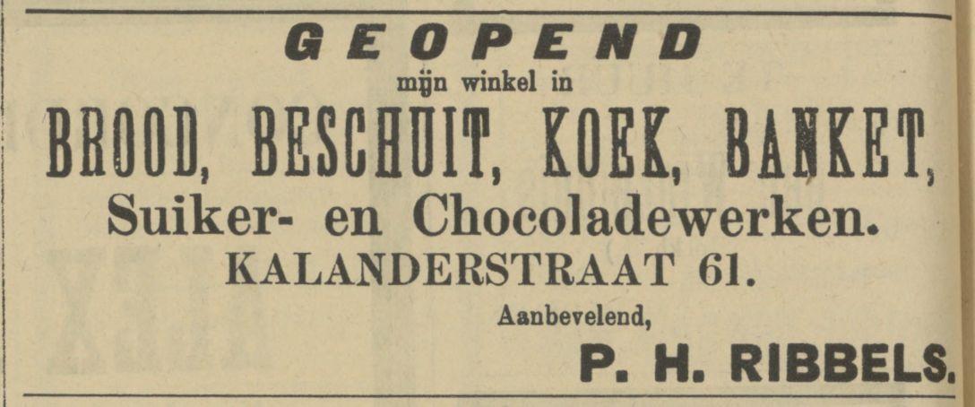 Ribbels, P.H., Brood- en Banketbakkerij, Kalanderstraat 61.
