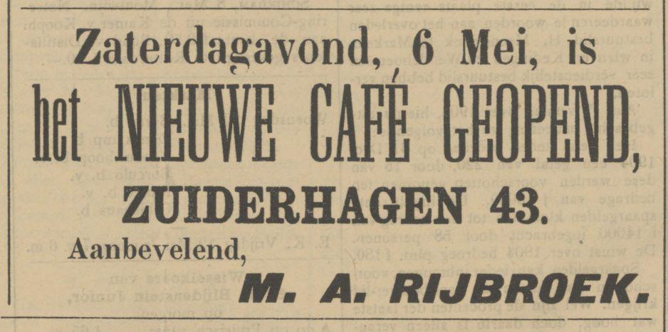 Rijbroek, M.A., Café-Restaurant, Zuiderhagen 43.