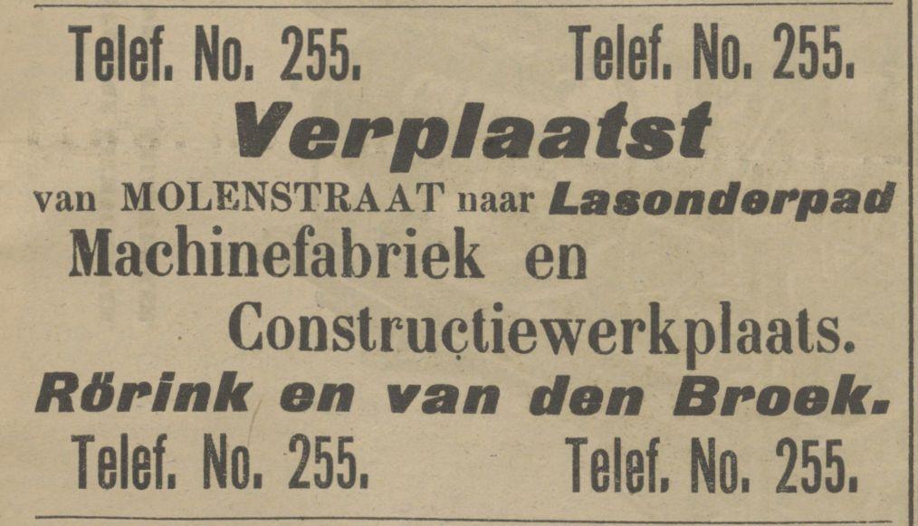 Rörink & v.d. Broek, Stoomsmederij en reparatiefabriek, Lasonderpad