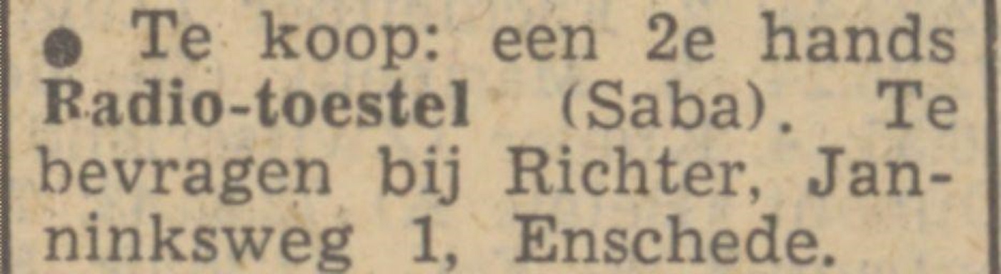 Janninksweg 1 Richter advertentie Tubantia 13-7-1949.