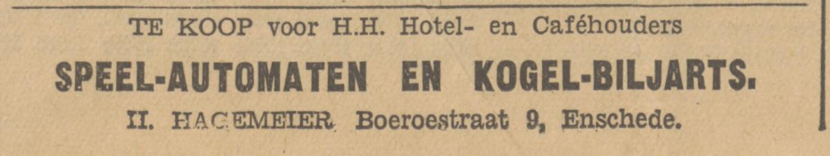 Hagemeier H.K. textielarbeider Boeroestraat 9 krantenbericht 16-5-1929 advertentie 2-1-1935