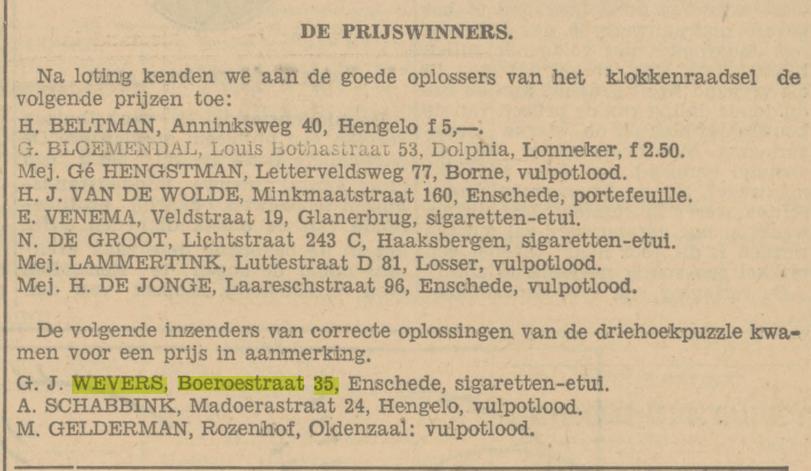 Wevers G.Joh. textielarbeider Boeroestraat 35 krantenbericht 23-12-1933