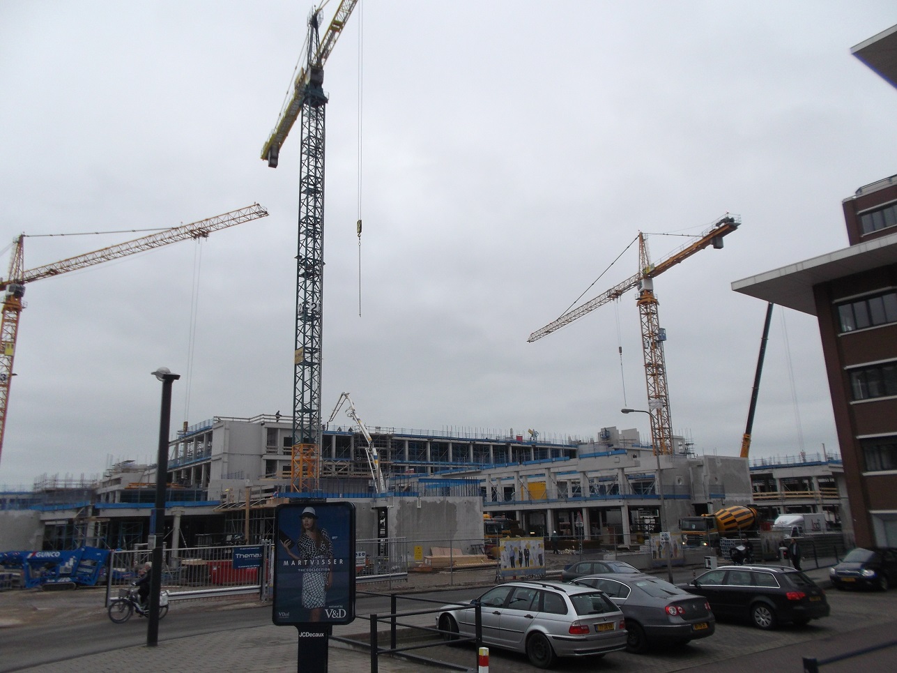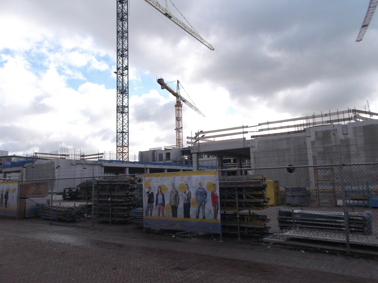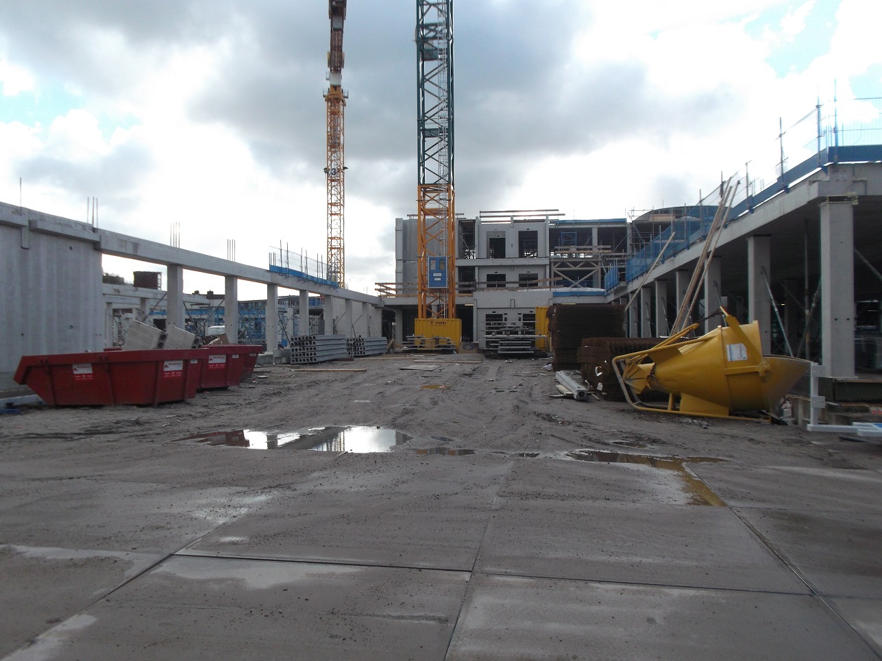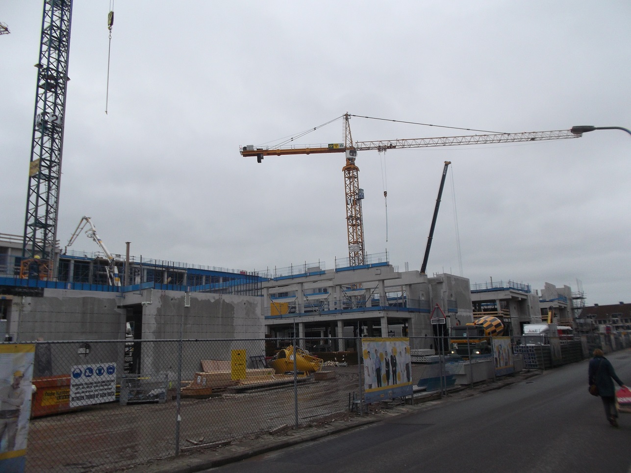 Ondertussen zijn ze al een stuk verder. wat mooi is te zien op deze foto, is de fundering hier(duidelijk), maar ook de grote gangen met aan- en afvoer van water etc, wat zo kenmerkend is voor ziekenhuizen.