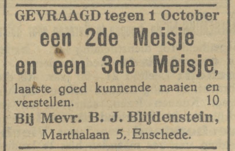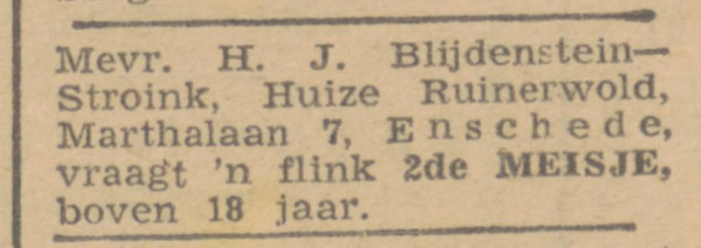 Blijdenstein, H.J. Fabrik., Marthalaan 7.