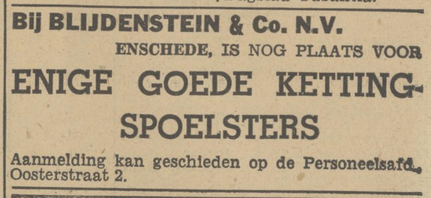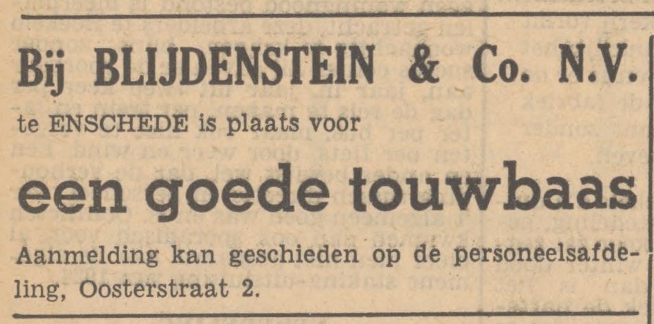 Blijdenstein Co, N.V. Afd. Verkoop, Oosterstraat 2