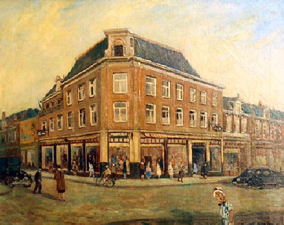 Haverstraat hoek Langestraat C en A schilderij Evert Rabbers.