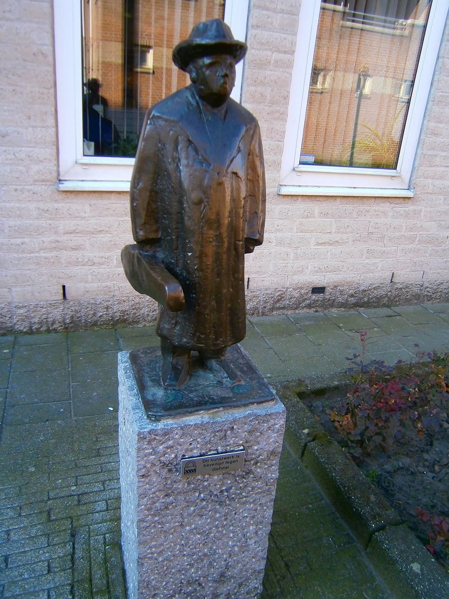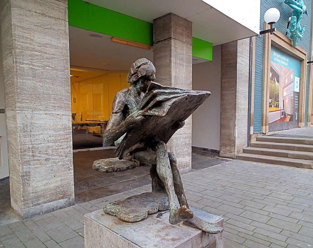 Langestraat 43 Voormalig kantoor van de Twentsche Courant Tubantia beeldje De Krantenlezer van kunstenaar Don Dekker. zie ook: http://vanderkrogt.net/standbeelden/obj ... ord=OV06cf
