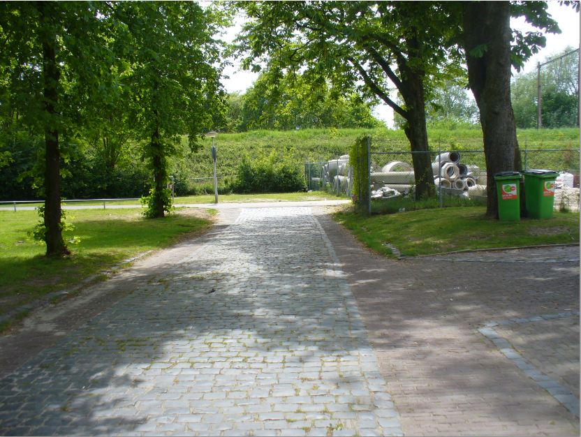 Op bovenstaande tekening lijkt het echt de bestrating van toen, ook de bomenrij klopt.