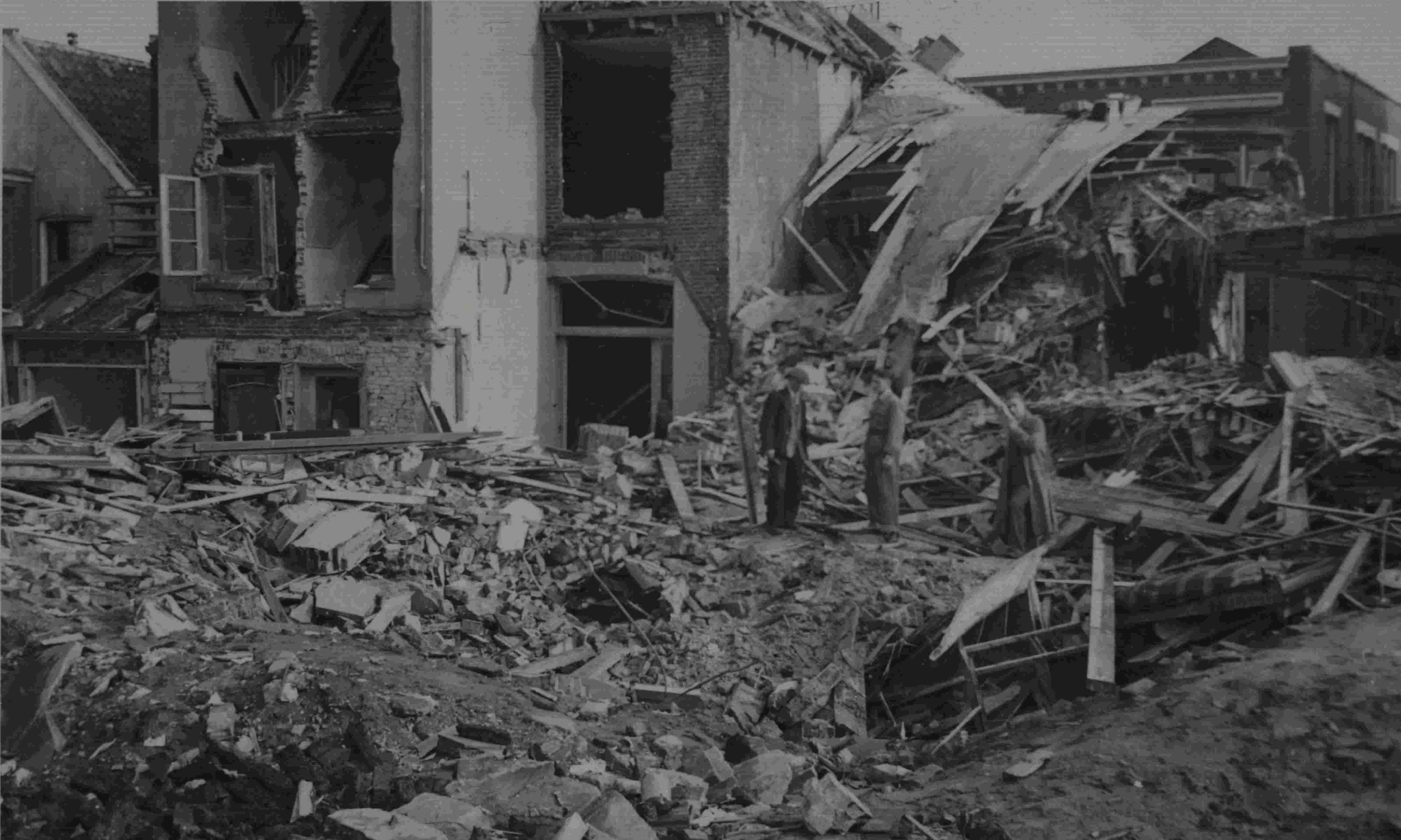 Een fotokaart van het bombardement in 1944.
