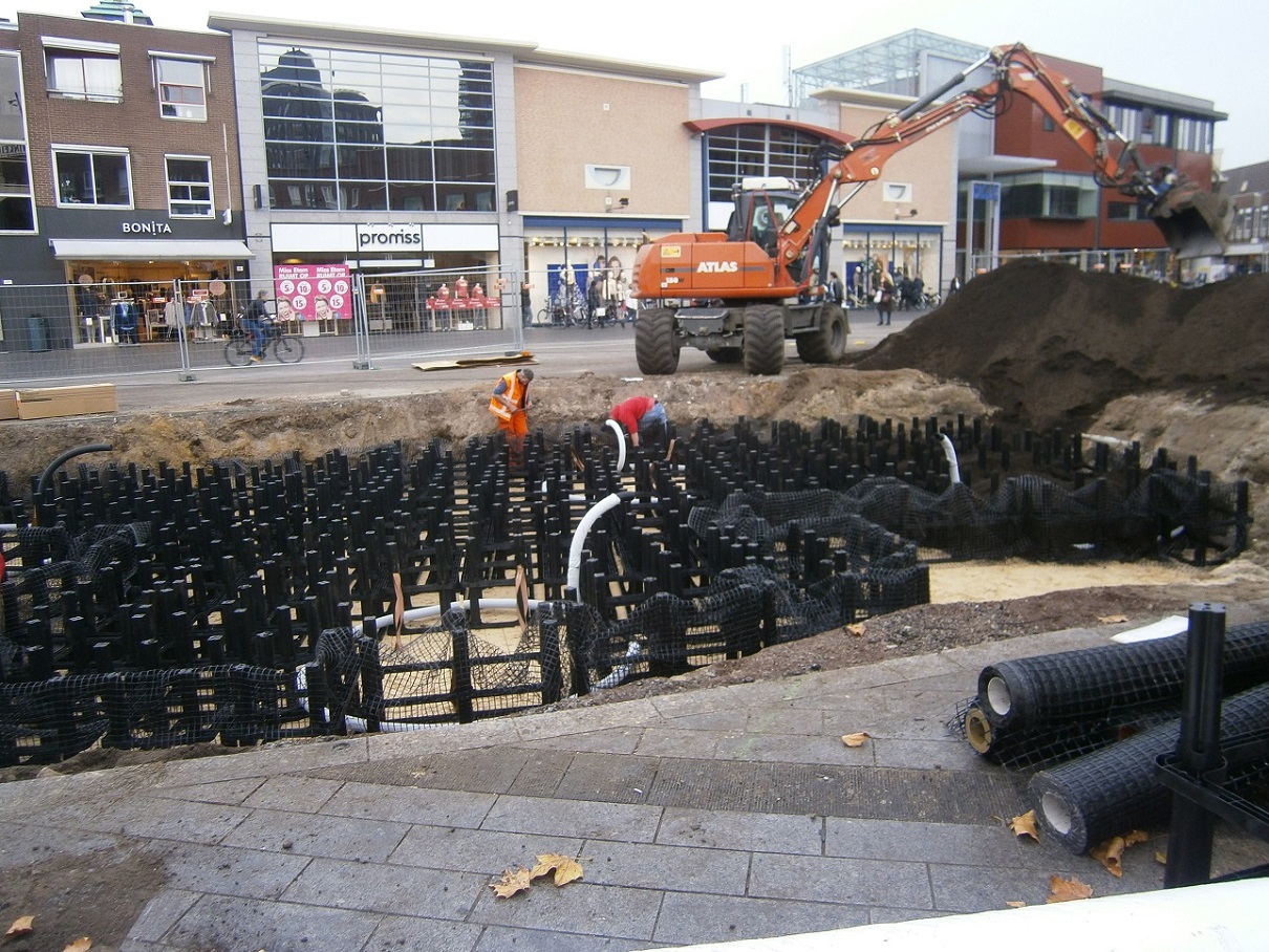 De werkzaamheden aan het Van Heekplein om nieuwe bomen te planten, zijn in volle gang. Een deel van het plein ligt nu open, maar aannemer NTP probeert ervoor te zorgen dat er zaterdag gewoon een markt kan zijn. In de grond worden nu bakken aangebracht, die de bomen beter moeten laten groeien.