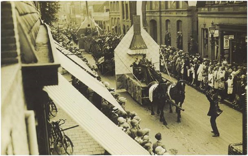 De vlag hangt ook uit . Mischien een vervroegde Koninginedag optocht ? Er was vroeger altijd met Koninginedag een allegorische optoch.