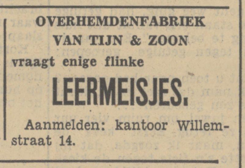 Tijn & Zn., Firma van, Confectiefabriek, Willemstraat 14.