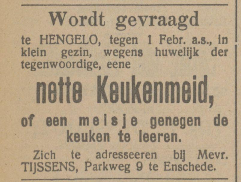 Tijssens, J.R., Inspecteur der Dir. Belastingen, Parkweg 9