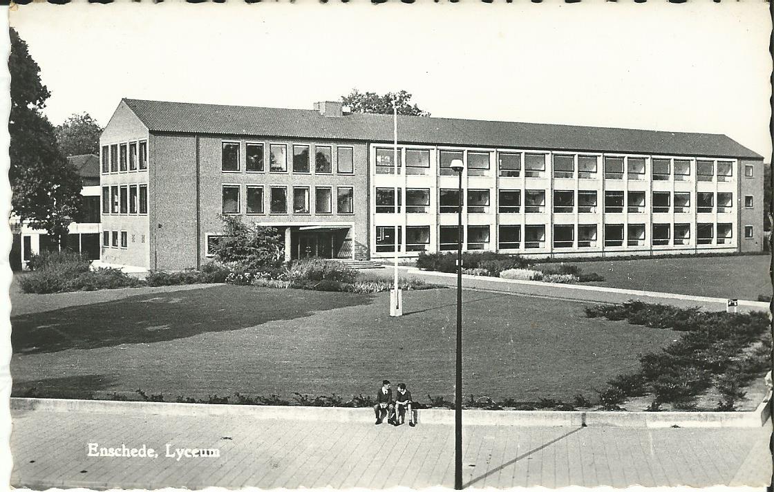 Naar het hier gelegen gemeentelijk Lyceum (4 april 1955, gewijzigd 12 december 1960). bron: http://straatnamen.enschede.nl/straten/00635/?char=L