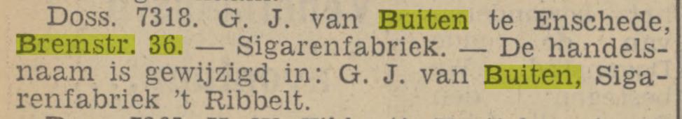 Bremstraat 36 G.J. van Buiten sigarenfabriek krantenbericht Tubantia 8-10-1938.jpg