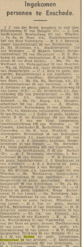 Buiten A.J.M. van timmerman Bremstraat 36 krantenbericht 4-1-1938