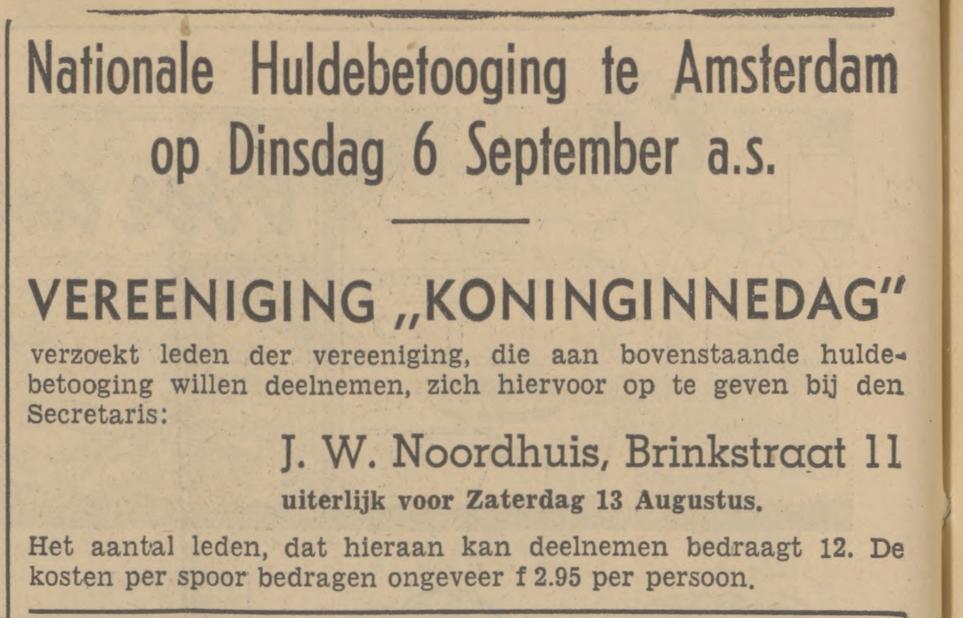 Noordhuis J.W. magazijnbediende Brinkstraat 11 advertentie 10-8-1938
