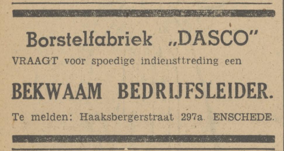 Borstelfabr. Dasco Haaksbergerstraat 297a.
