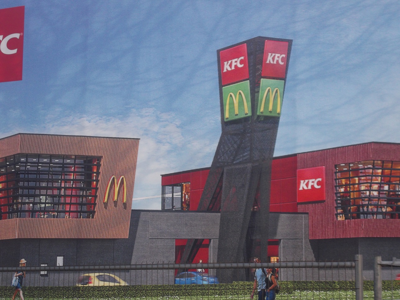 McDonald’s (570 m2) en KFC (500 m2) krijgen ieder een eigen gebouw. De restaurants worden wel onderling verbonden. Het Foodcourt komt op een prominente zichtlocatie aan een drukke kruising aan de Zuiderval, de invalsweg naar het centrum van Enschede vanaf de snelweg A-35.