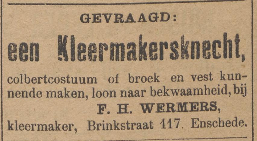 Wermers Fr.H. kleermaker Brinkstraat 117 advertentie 24-1-1914