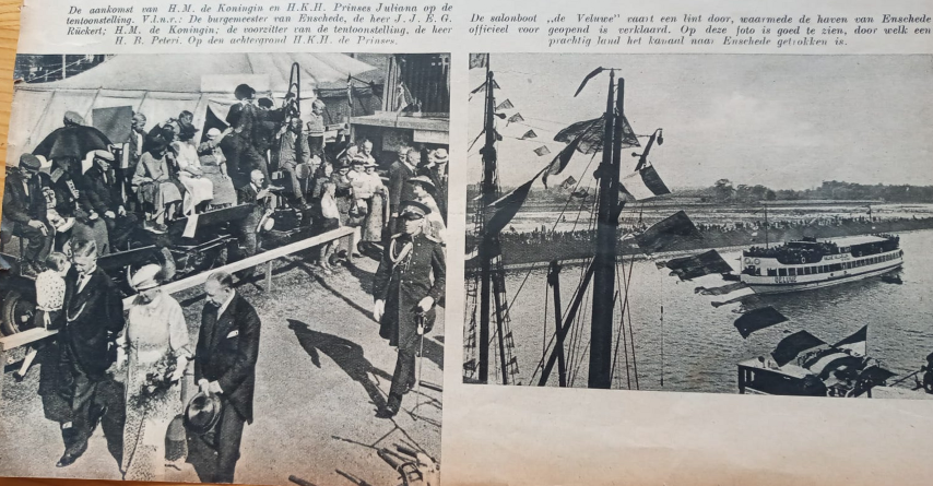 De eerste foto is dus van de tentoonstelling Volle Profijt die op het terrein het Zeggelt aan de Nieuwe Schoolweg is gehouden en viel dus samen met de opening van de haven Enschede op 26-8-1936. Zie bijgaand krantenbericht van 7-8-1936