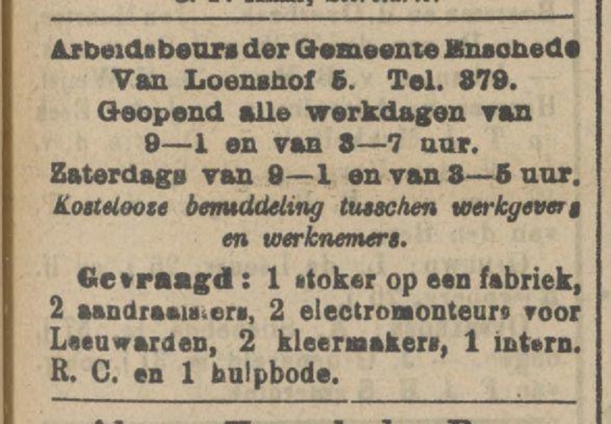 Dan was dat dus het pand van de Arbeidsbeurs van de Gemeente Enschede volgens dit krantenbericht uit de Tubantia van 25-1-1912. Bedankt voor het speurwerk Willem.enschedeinansichten schreef: ↑ma sep 24, 2018 9:00 pm 1915 telefoongids.