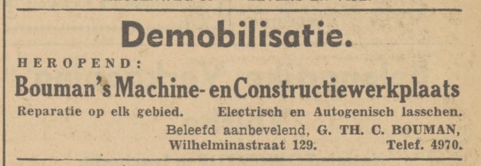 Bouman’s Machine- en Constructiewerkpl. Wilhelminastraat 129