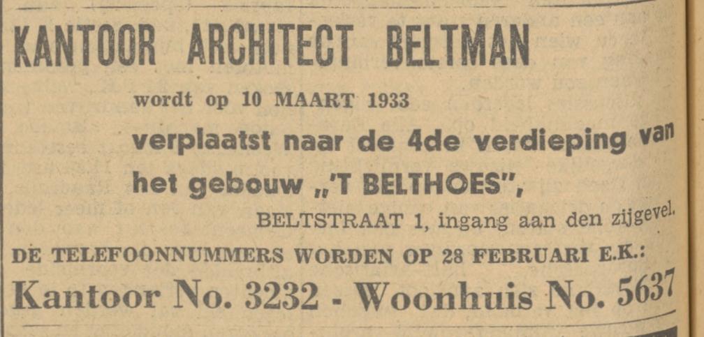 Bouwk. Ingen. Bur. Beltman (G. Beltman A.Gzn., Civ. Ing. En Arch.), Beltstraat 1