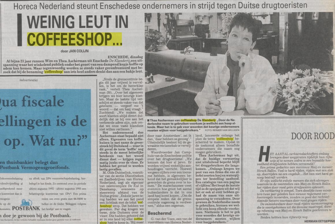 Klanderij 115 coffeeshop krantenbericht Telegraaf 14-9-1993.jpg