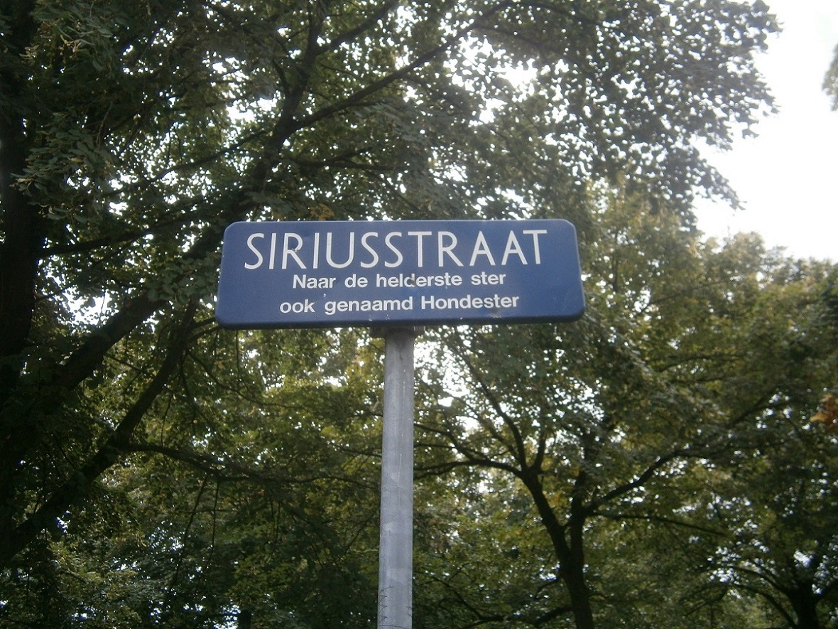 Naar de helderste ster aan de sterrenhemel, ook genaamd "Hondsster"., behorende tot het sterrenbeeld "Grote Hond" (24 november 1947, gewijzigd 6 april 1964). bron: http://straatnamen.enschede.nl/straten/00911/?char=S