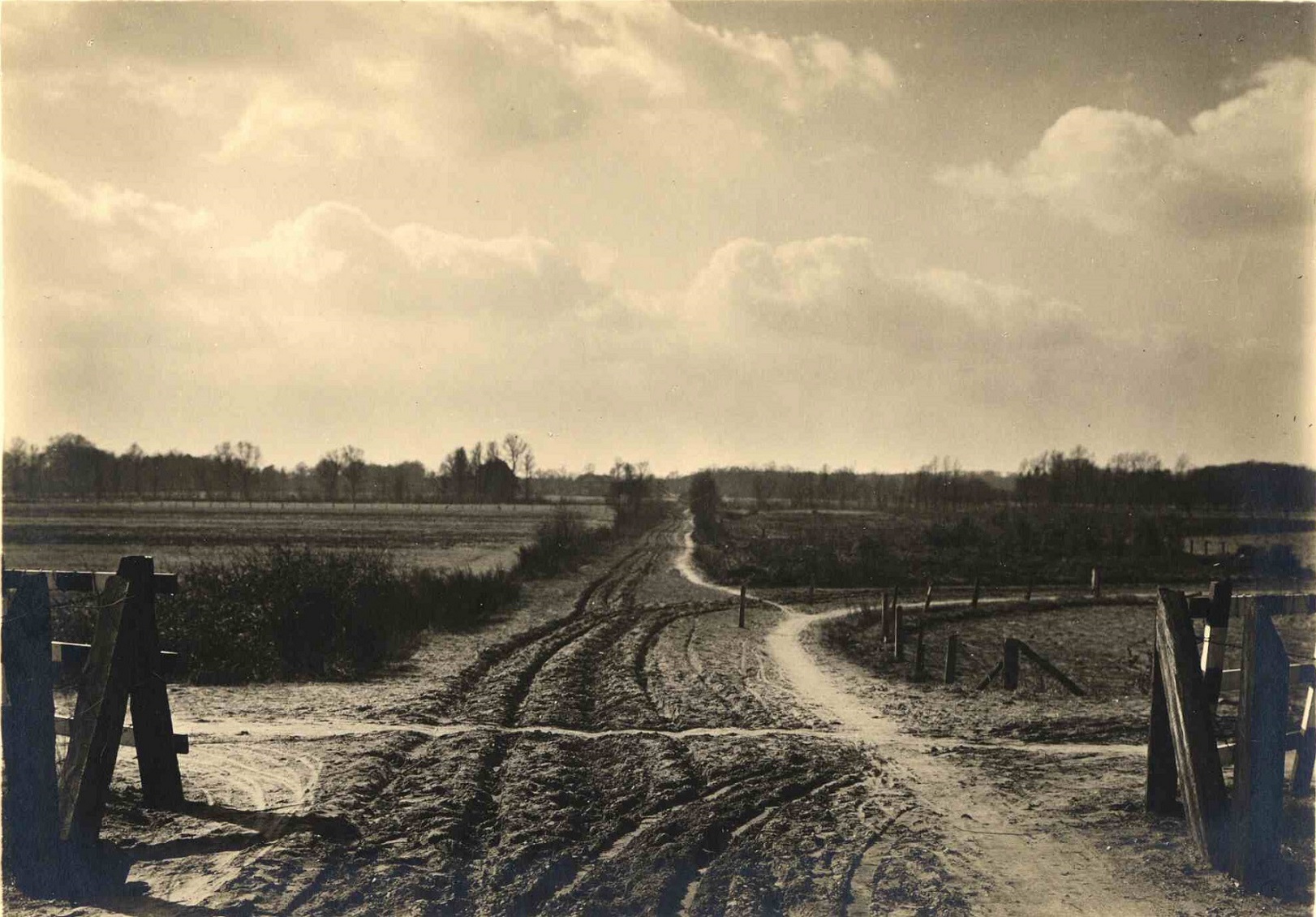 Bruggenmorsweg 1934 Zandpad waar Lonnekerbrug over het Twentekanaal zal komen.jpg
