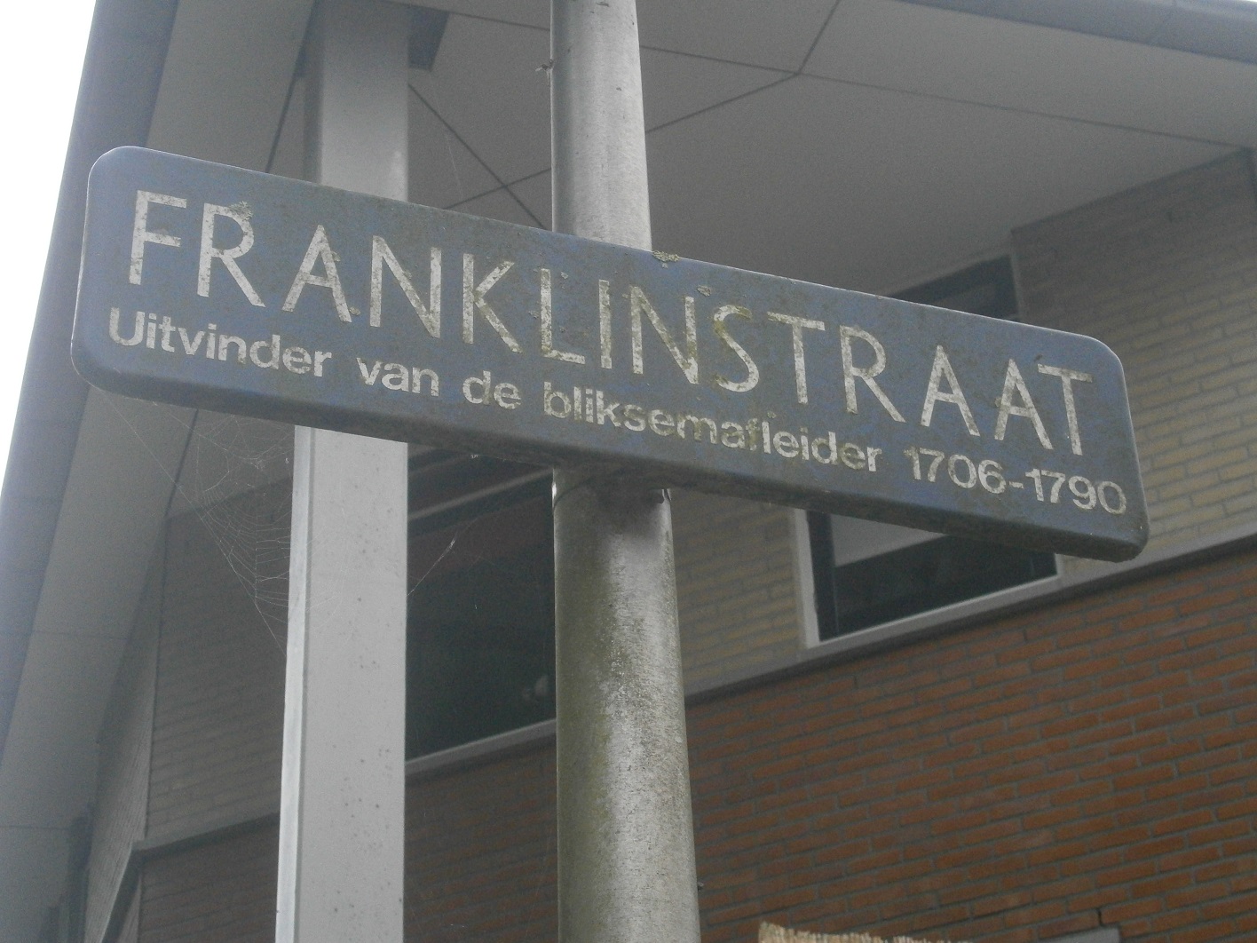 Naar Benjamin Franklin, geboren 17 januari 1706 te Boston, overleden 17 mei 1790 te Philadelphia, Am. politicus, natuurkundige, schrijver en onderzoeker op een veelheid van terreinen. Was o.m. uitvinder van de bliksemafleider (10 oktober 1929 voormalig Lonneker). Omschrijving vastgesteld bij raadsbesluit van 2 mei 1936. bron: http://straatnamen.enschede.nl/straten/00286/?char=F