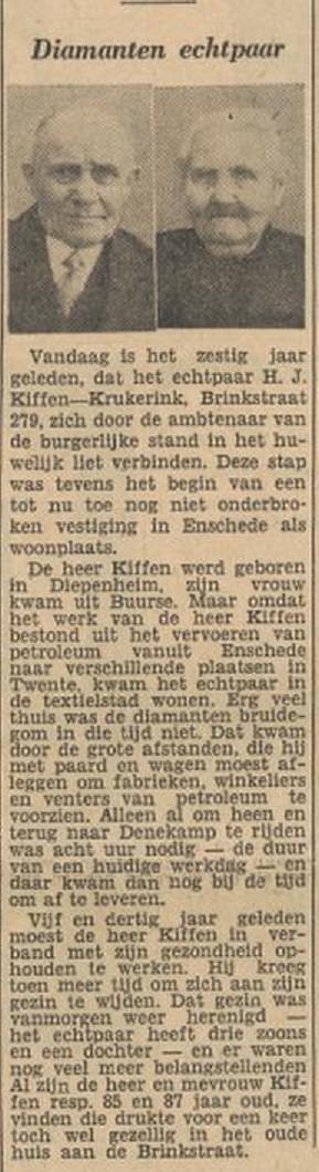 Brinkstraat 279 H.J. Kiffen krantenbericht Tubantia 27-4-1957.jpg