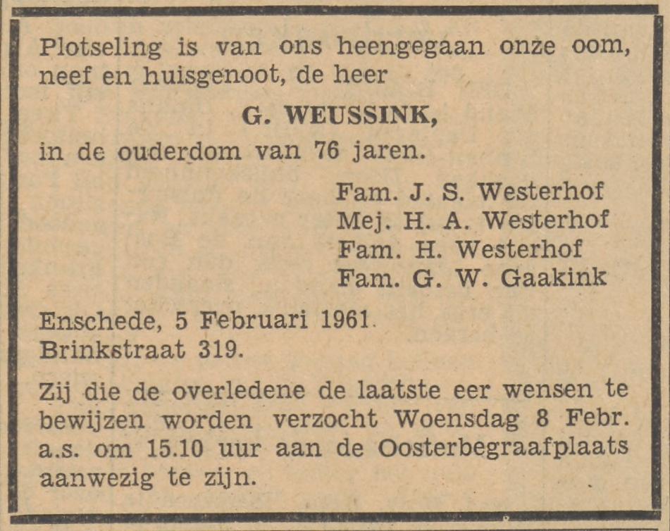 Brinkstraat 319 G. Weussink overlijdensadvertentie Tubantia 6-2-1961.jpg