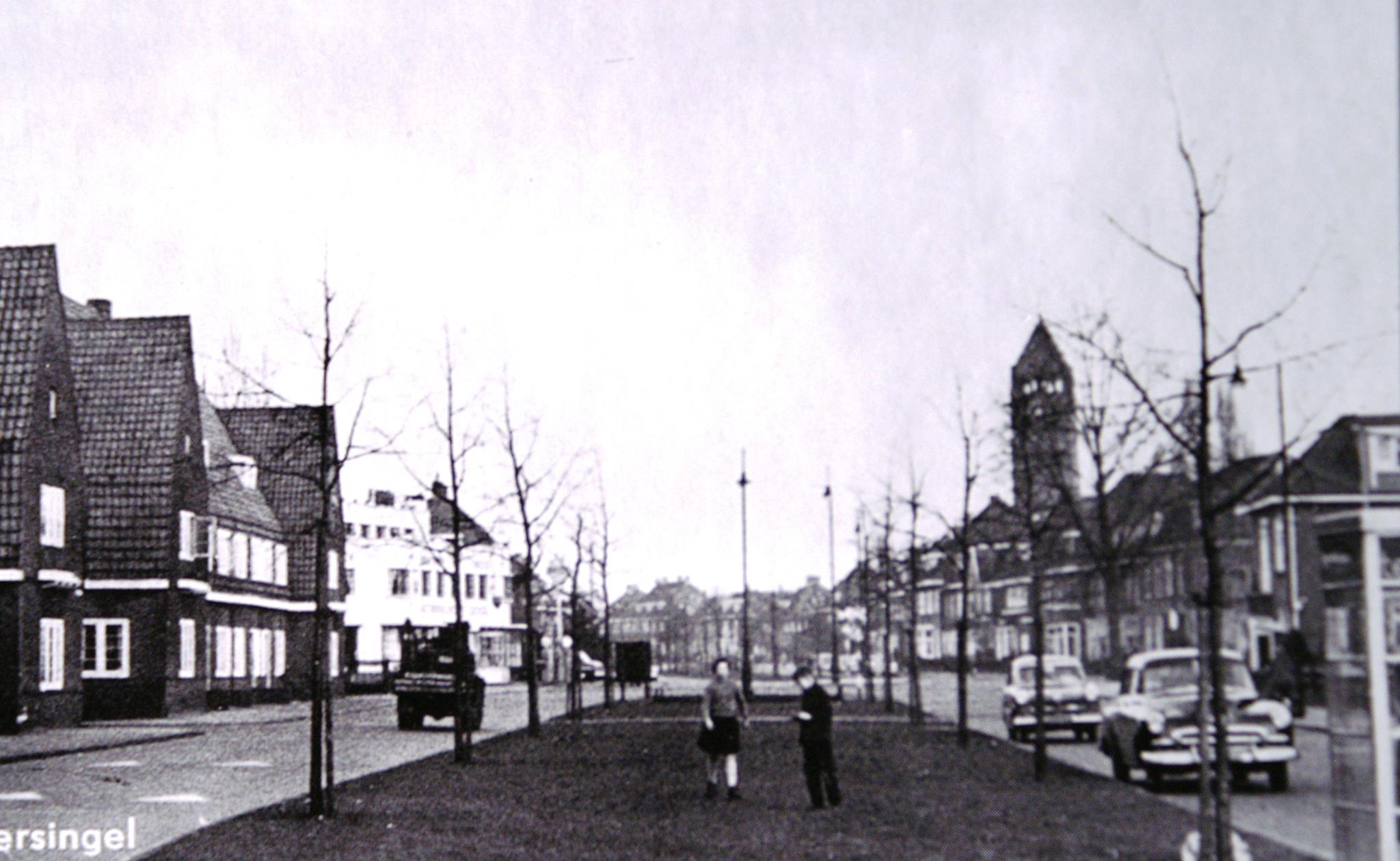 Een gedeelte van de Singels hadden vroeger gescheiden rijbanen. Zie hieronder een voorbeeld aan de Lasondersingel. Foto 1958
