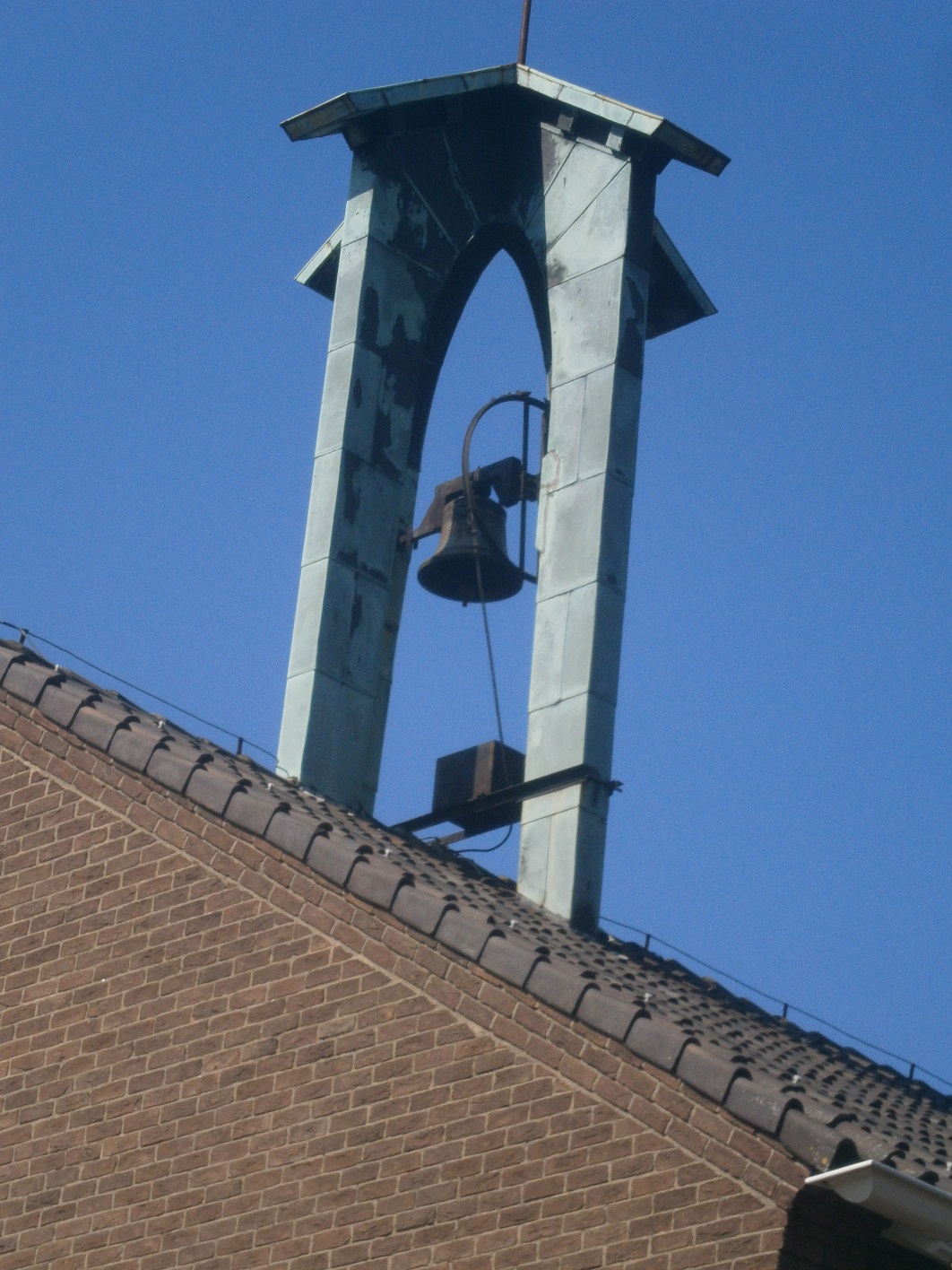 - het is een klokkentorentje/klokkenstoel, dus het zal een kleine kerk zonder toren of misschien een school zijn