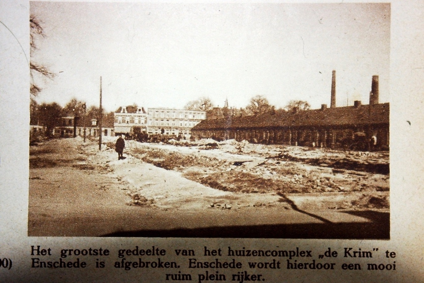 De herkomst van de benaming "De Krim" staat niet vast, hoewel algemeen wordt aangenomen, dat deze destijds is ontleend aan de Krim-oorlog. Een feit is wel dat het complex al dadelijk na oplevering met deze naam is aangeduid (niet officieel vastgesteld). Bij raadsbesluit van 14 augustus 1889 werden voor de in dit stadsgedeelte liggende straten de namen "1e, 2e en 3e Krimstraat" (aan laastgenoemde straat waren vóór de stadsbrand reeds 33 woningen gebouwd; na de brand verrezen in het hele complex nog eens 112 woningen) en "Krimpleintje" vastgesteld, welke namen bij besluit van 20 juli 1891 werden gewijzigd in resp. "Oranjestraat", "Prins Mauritsstraat" en "Prins Frederik Hendrikstraat". Bij besluit van 27 april 1899 werden hiervoor resp. de namen "Oranjestraat", "Mauritsstraat" en "Frederik Hendrikstraat" vastgesteld, terwijl het "Krimpleintje" toen "Lindelaan" werd genoemd. Nadat het woningcomplex in het tijdvak van 1927-1934 was afgebroken, zijn bij besluit van 2 mei 1938 de Frederik Hendrikstraat en de Mauritsstraat vervallen, en zijn de Oranjestraat en de Lindelaan door het besluit van 12 juli 1954 - aanleg Boulevard 1945 - ingaande 1956 vervallen. Het gehele terrein is na de 2e Wereldoorlog 1940-1945 opgenomen in het wederopbouwplan binnenstad en wordt thans globaal ingenomen door het Postkantoor en de bebouwing van de Burgemeester Edo Bergsmalaan (zakenpanden, woonflats en gebouw GGGD). zie: http://straatnamen.enschede.nl/archief/00094/?char=D