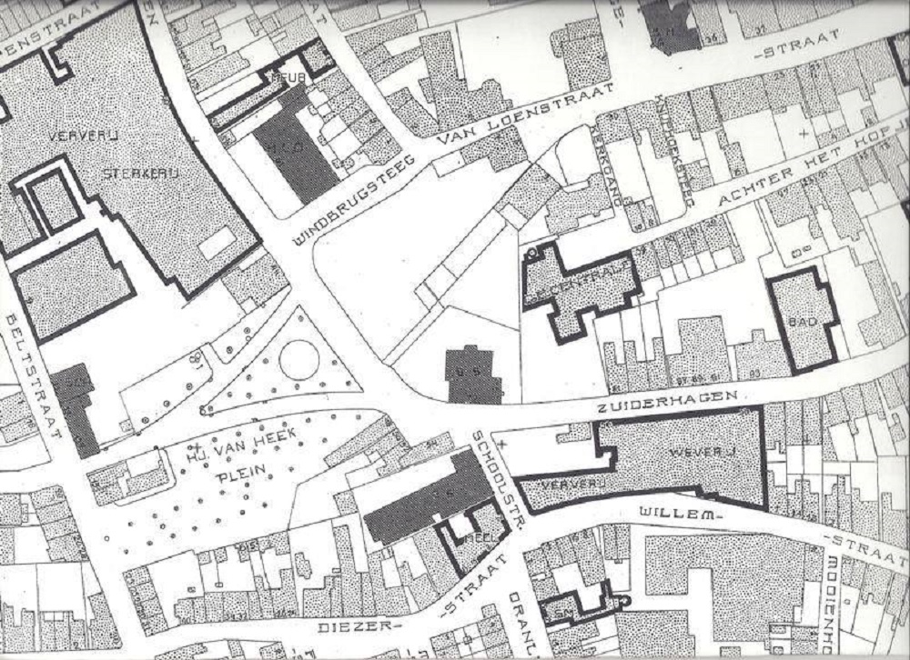 Nu is daar dus het van Loenshof. Ook is er nog de Windbrugstraat en deze loopt van de Raadhuisstraat eerst in w.-, daarna n.w.-richting tot het Van Loenshof.