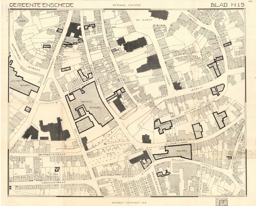 Plattegrond van Enschede in 1913. Detailkaart straatnamen met huisnummering. Blad N 15 Haaksbergerstraat, Zuiderhagen, Van Loenstraat.jpg