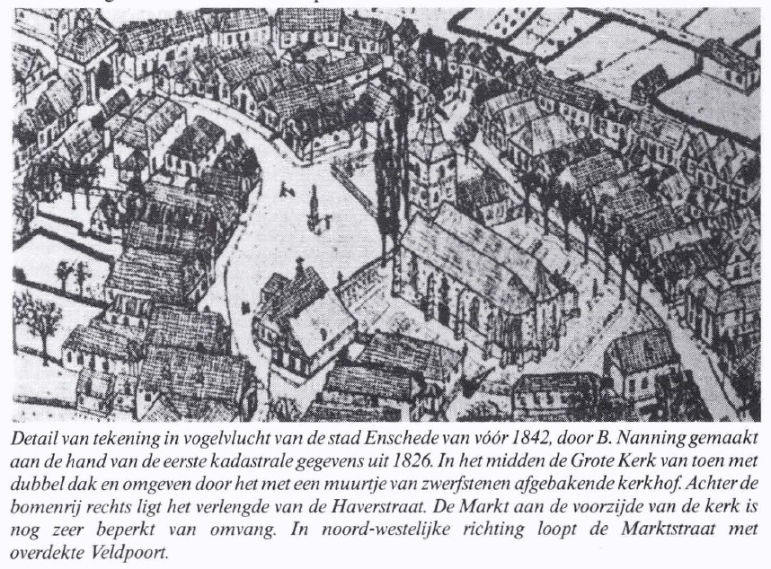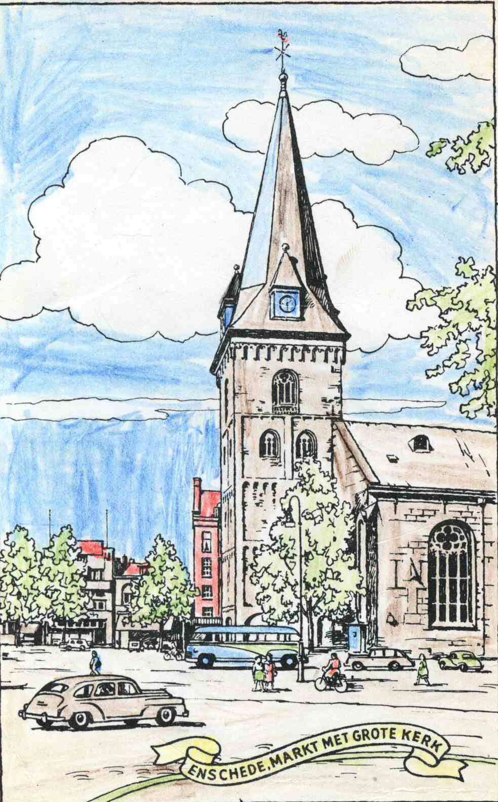 Markt achterkant Grote Kerk schilderij tekening Klaas Bernink 1977