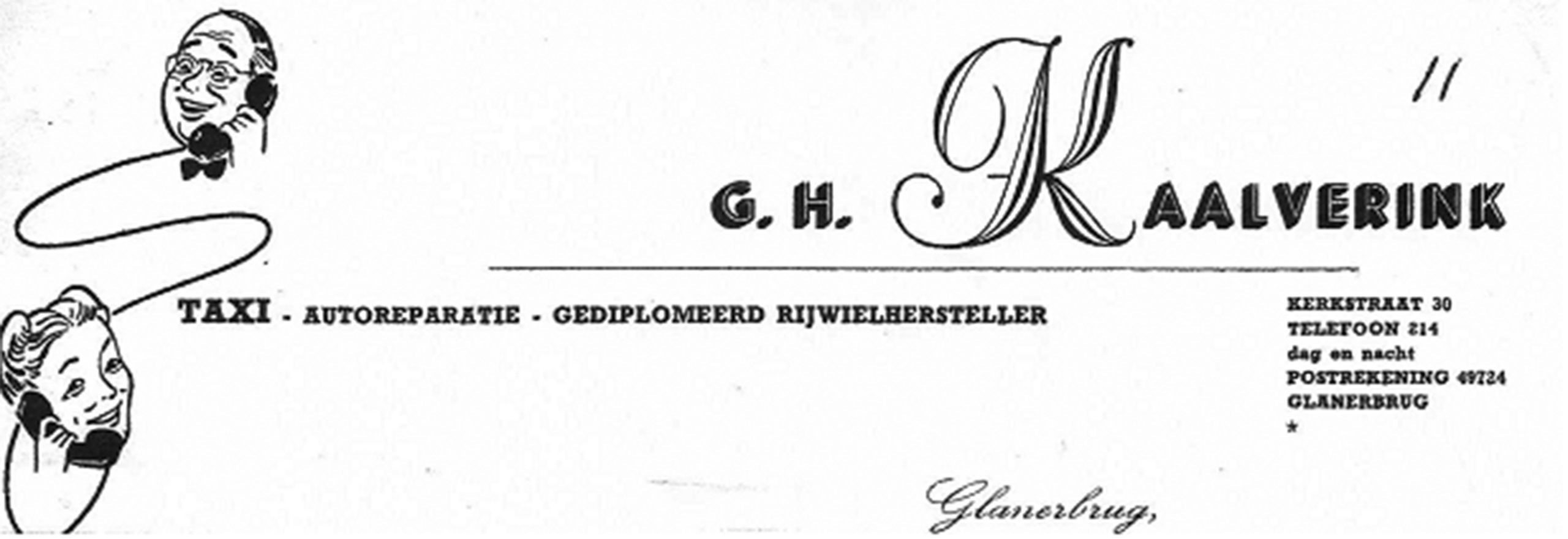 214 Kaalverink, G.H. Rijwielhersteller, mot. en autoreparatie, taxionderneming, Kerkstraat 30.
