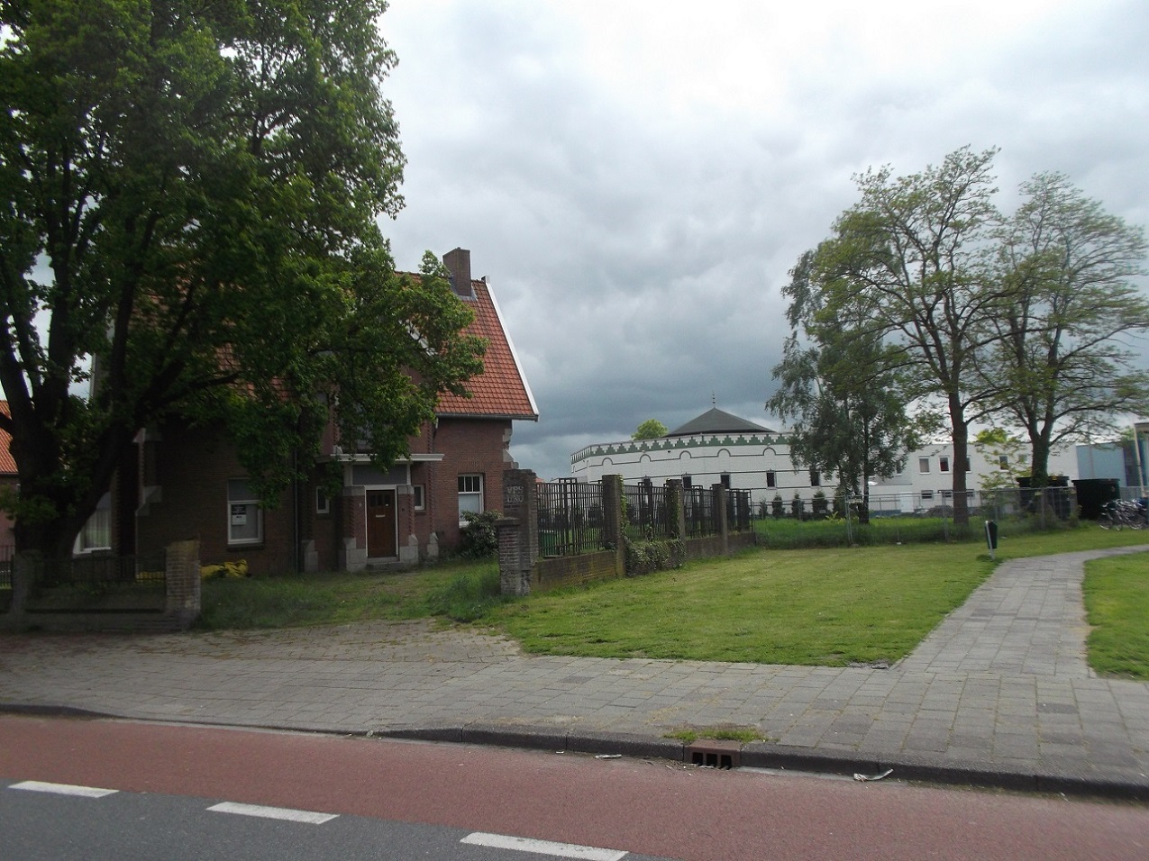 Bedankt voor de foto’s. ik heb net even gekeken met Google Streetview, het is daar aardig veranderd. Er staat inderdaad een knots van een moskee, maar tussen de directeurswoning en die moskee is nog steeds een stukje weiland. Daar stond vroeger vee in, of dat slachtvee was weet ik niet, gezien de buren zal het haast wel.