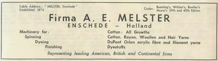 A.E. Melster Enschede vertegenwoordiger katoenen garens voor binnen- en buitenlandse spinnerijen advertentie 2-7-1929