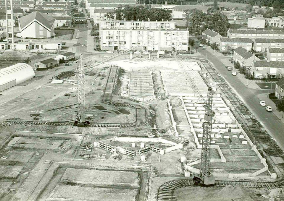 Molenstraat 50  bouw van gebouw De Noordmolen voor de Bouwdienst. Op achtergrond  spoorlijn Enschede-Gronau jaren 70.jpeg