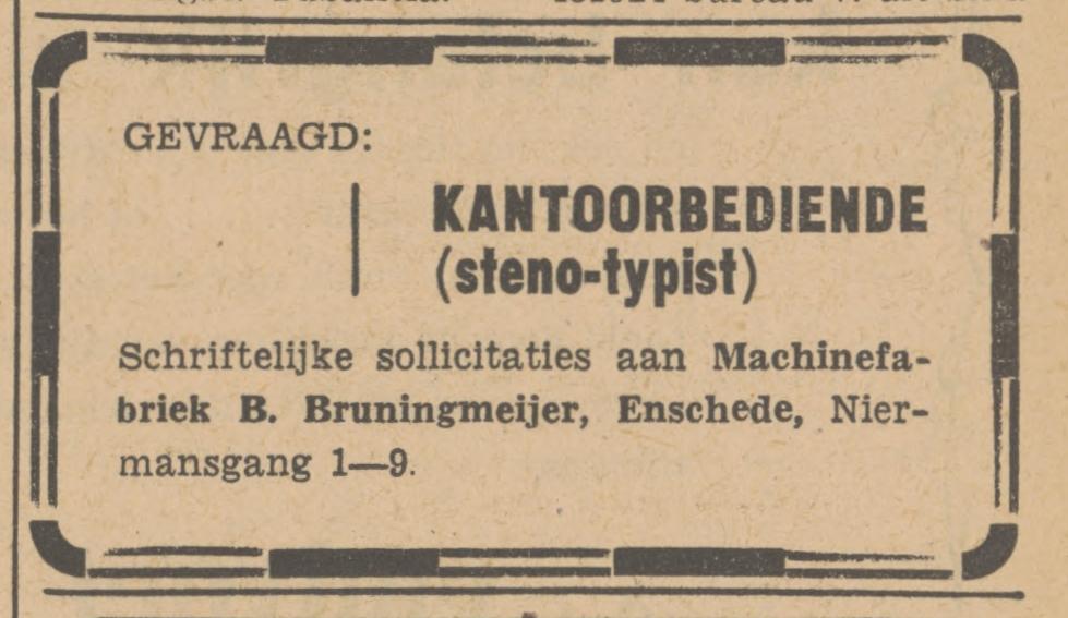Bruningmeijer, B. Machinefabr., bakkerij-, koel- en winkelinstall., Niermansgang 3
