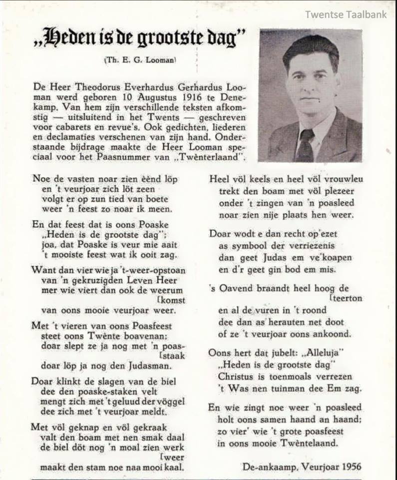 Een leuk filmpje over Palmpasen vieren in Enschede in het jaar 1927 te vinden op: http://www.npogeschiedenis.nl/speler.WO ... 42872.htmlPitr de Nerd schreef:Paar fraaie plaatjes Arie. Ik kan me die "gadderaars" ook herinneren uit 1955 of daaromtrent. Ik weet nog dat ik aan mijn moeder vroeg waarom die mensen zo raar aangekleed waren. Op z'n Rotterdams en nogal luidWaarop een dame die meeliep me uitlegde dat ze in Twente vroeger allemaal van die kleding droegen. Dat begreep ik niet. Je ging toch niet vrijwillig op klompen lopen?