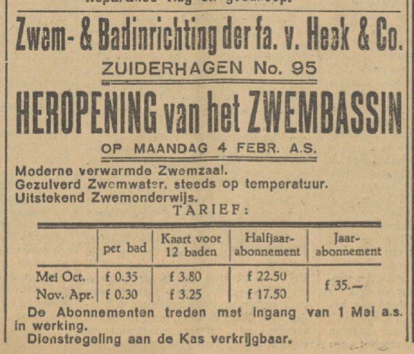 Zuiderhagen 95 Zwem- & Badinrichting Fa. van Heek & Co. advertentie Tubantia 2-2-1929