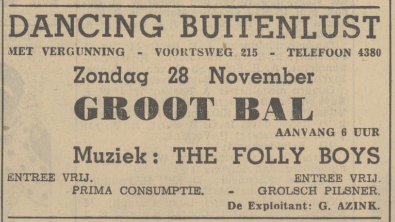 Voortsweg 215 cafe Buitenlust G. Azink advertentie Tubantia 26-11-1937