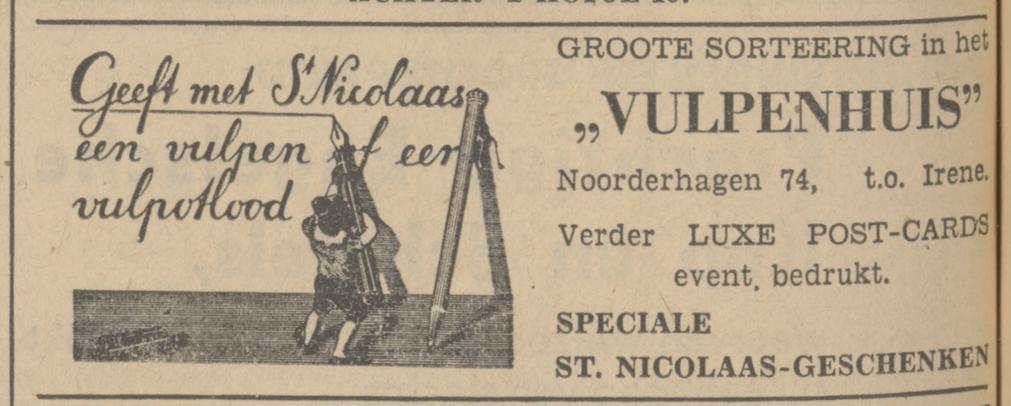 Noorderhagen 74 Vulpenhuis advertentie Tubantia 25-11-1936